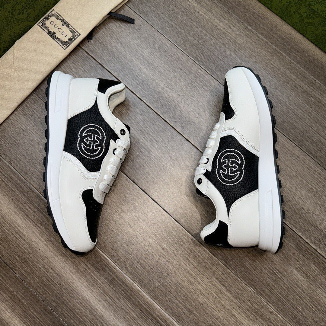Black And White Leather GCC Sneakers