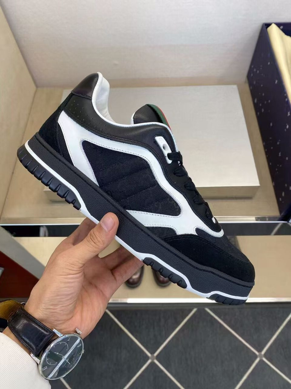 • Signature Details: Incorporates the Gcci script and Interlocking G Web tag, along with green and red web detailing on the tongue.