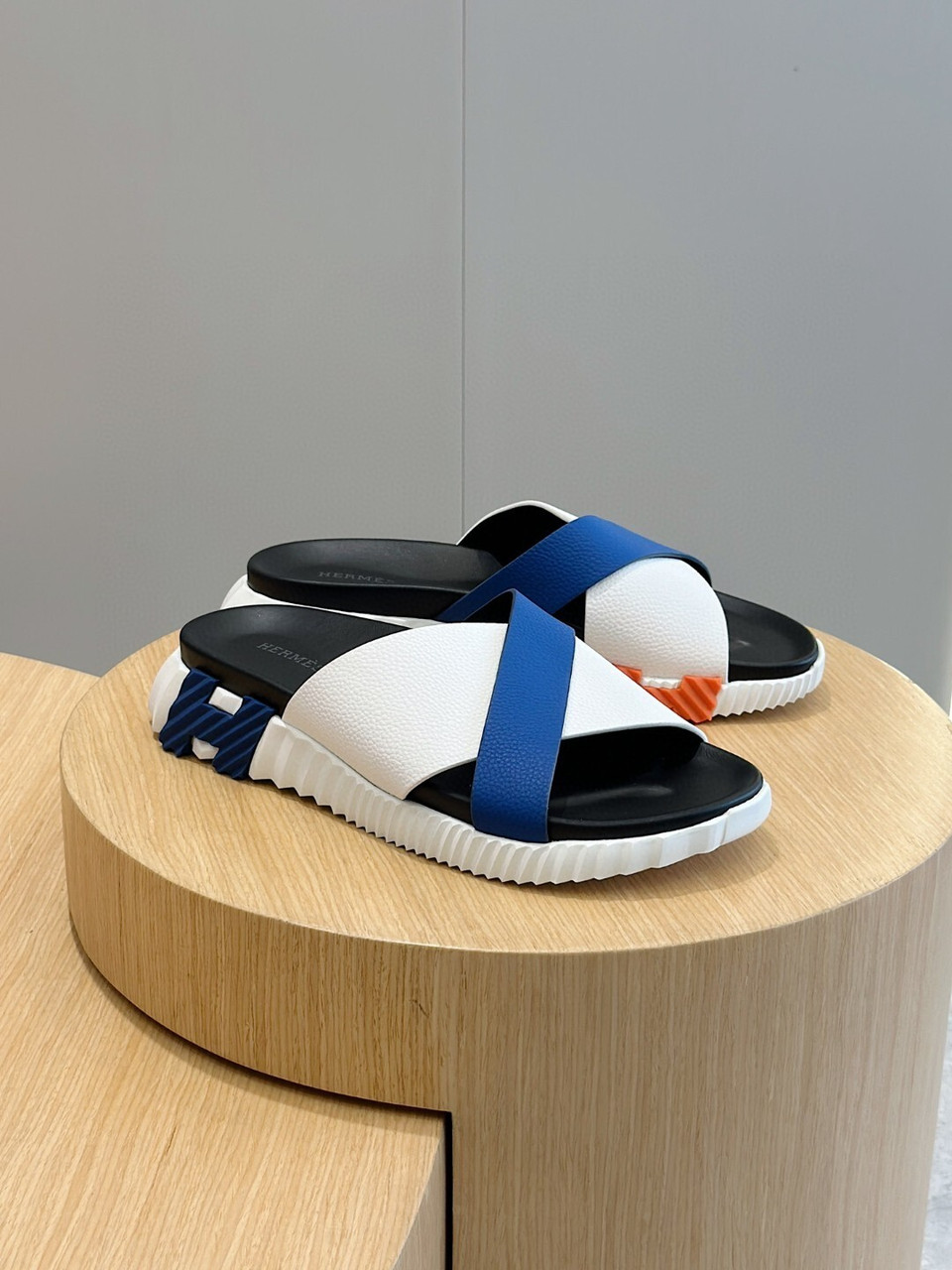 This modern, minimalist slide is designed for a refined yet athletic aesthetic, featuring a distinctive graphic silhouette. Crafted for versatility, the sandal is defined by its architectural, lightweight rubber sole that provides a subtle 4 cm elevation while maintaining a sleek profile. The upper is typically constructed from premium calfskin or exceptionally soft Nappa leather, often detailed with intricate stitching or signature geometric cut-outs that reflect high-end craftsmanship. The interior is lined with smooth lambskin and paired with a cushioned calfskin insole to ensure a soft feel against the skin, making it an ideal choice for both urban environments and luxury travel.