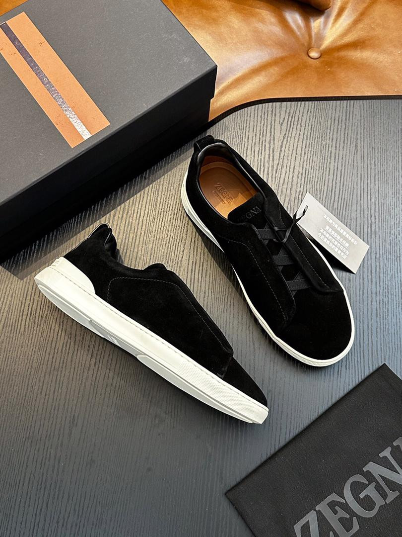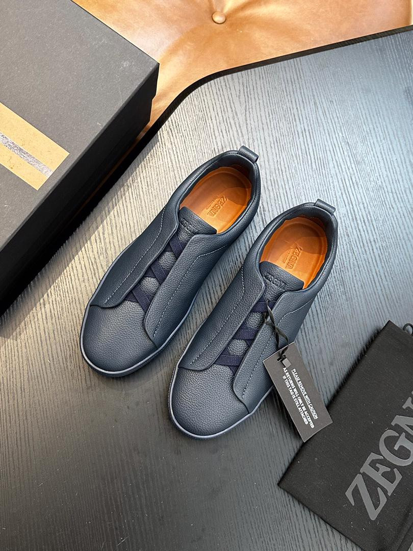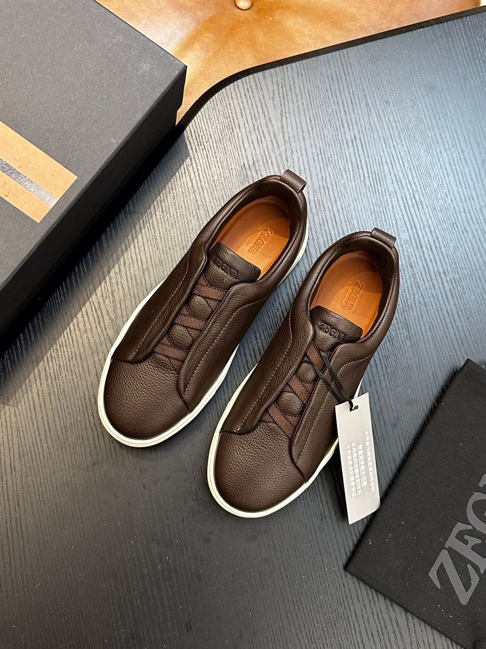 The Zegna Triple Stitch is an iconic luxury sneaker known for its signature triple-crossed elastic detail, slip-on ease, and premium Italian craftsmanship, blending casual comfort with refined style using materials like suede, calfskin (SECONDSKIN), and deerskin for a versatile, adaptable shoe perfect for modern lifestyles, balancing elegance and leisurewear.