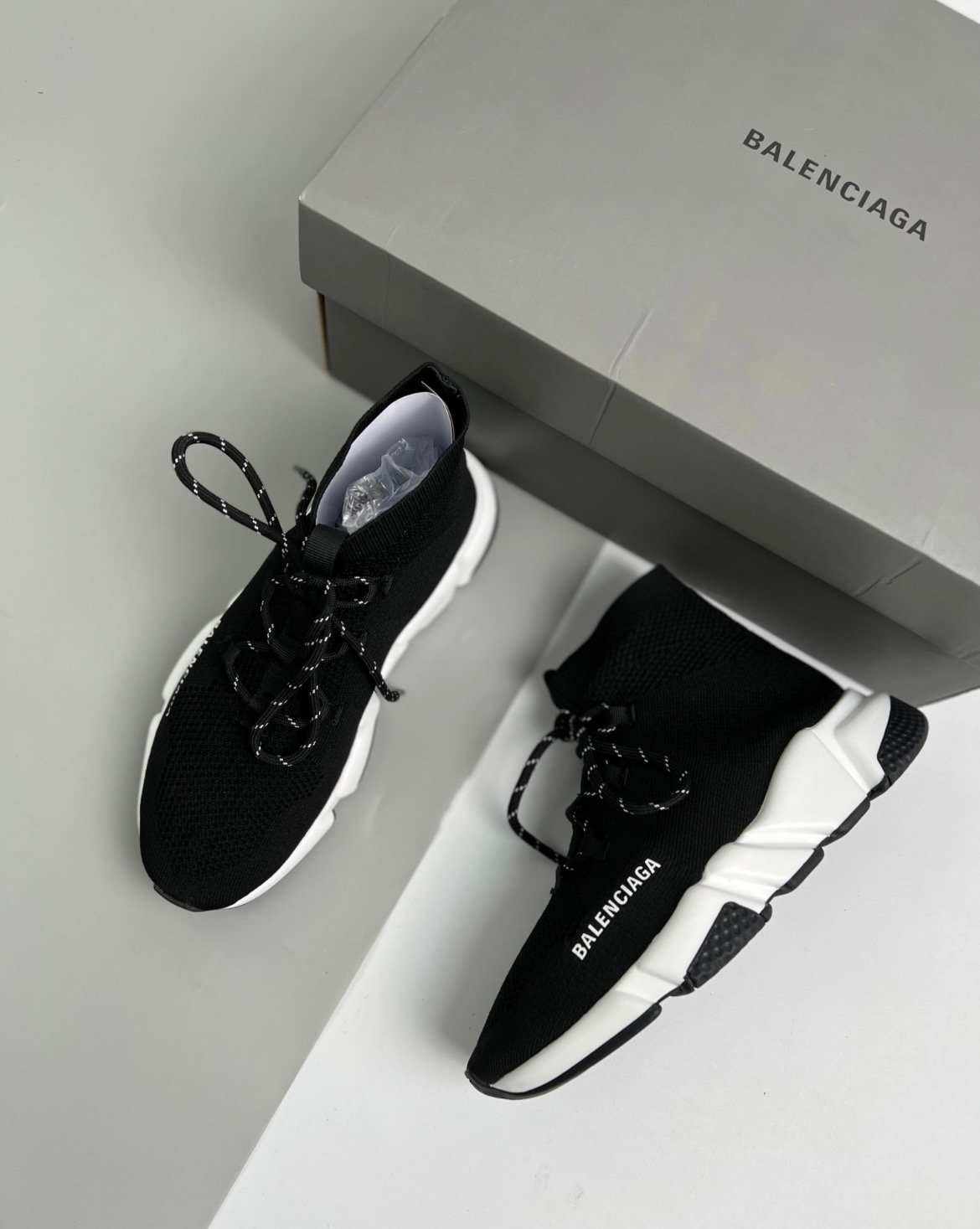 The Speed Lace Up is a modern, luxury sneaker blending street style with high fashion, featuring a signature sock like, stretch knit upper (often recycled materials) with an integrated, bicolor lacing system for enhanced fit, resting on an ultra-flexible, molded sole with "No Memory" technology for lightweight comfort and a near-barefoot feel